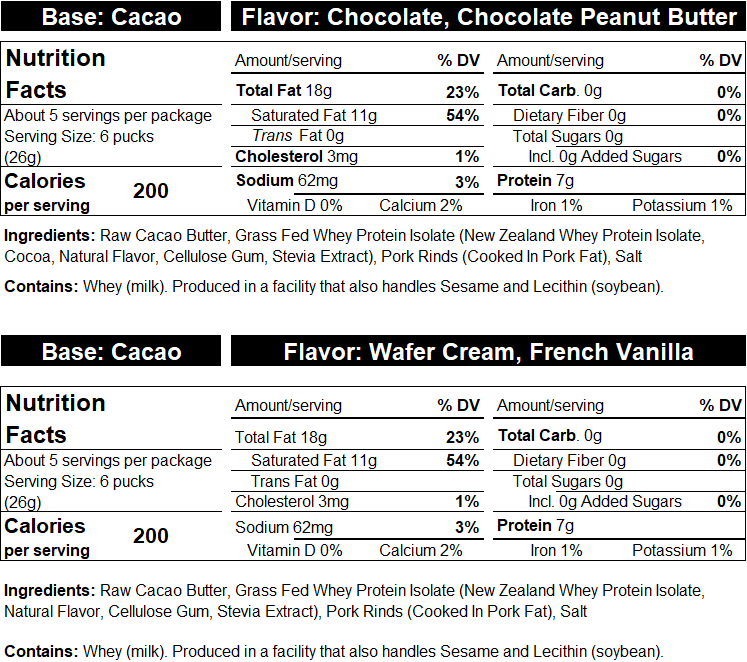 Each bag of Pocket Power Pucks is packed with the same clean ingredients and nutrients as a traditional Power Puck, but in a size that makes clean snacking effortless. With no carbs, no sugars, and no added seed oils, these mini pucks are loaded with healthy saturated fats and a generous serving of protein, providing long-lasting satiety and energy.
