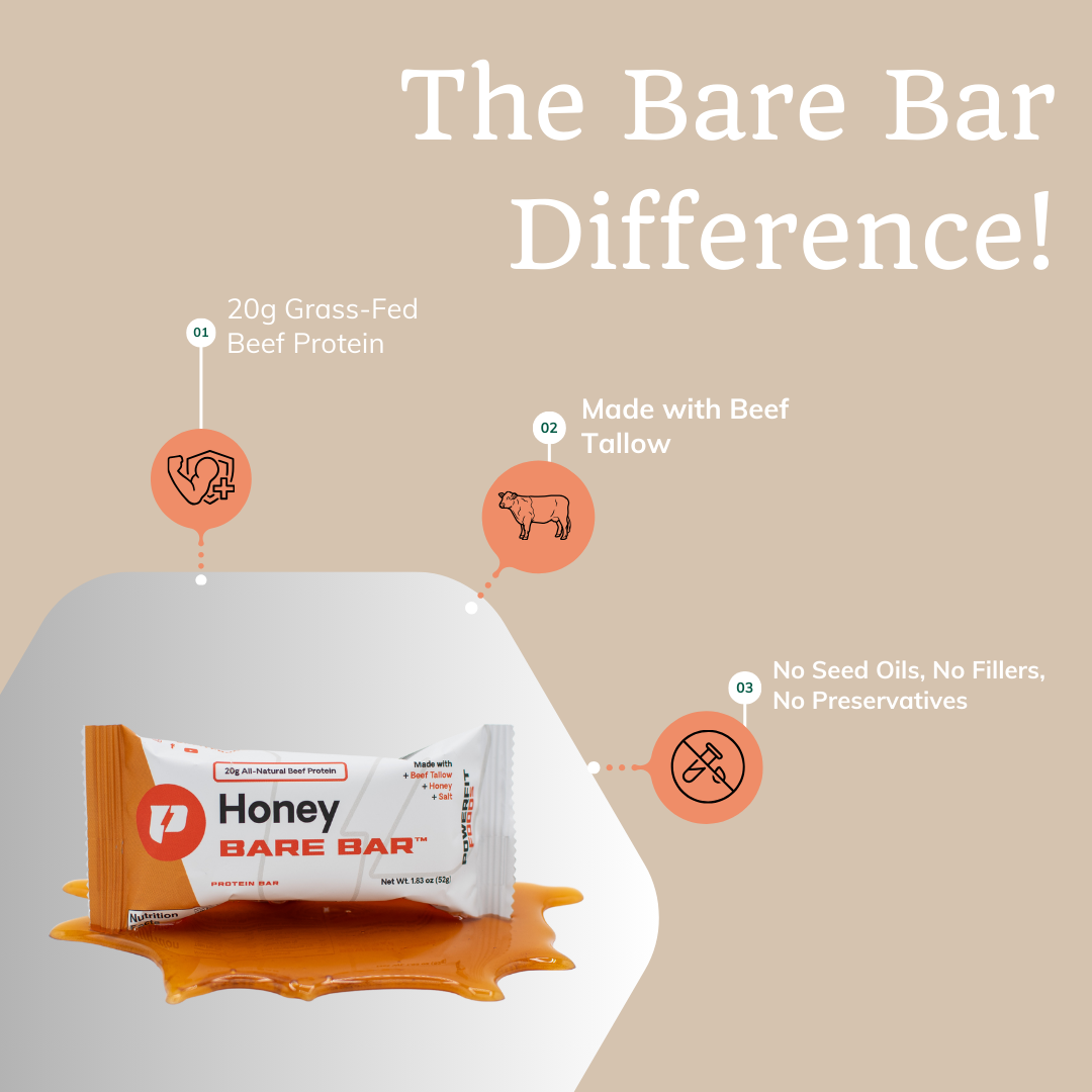 Unlike traditional protein bars loaded with unnecessary fillers, seed oils, artificial sweeteners, and preservatives, the Bare Bar offers a clean, nutrient-dense option that supports your health and fitness goals.