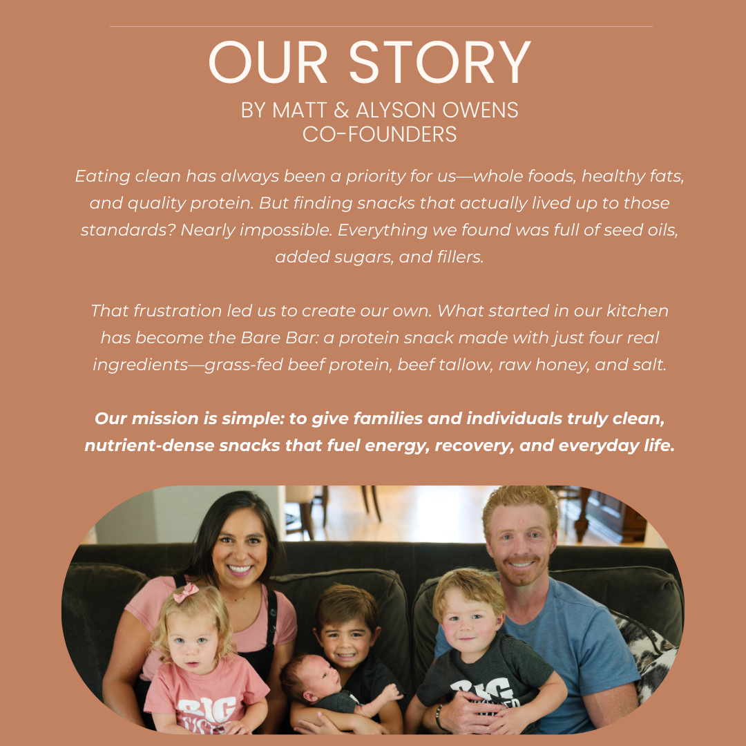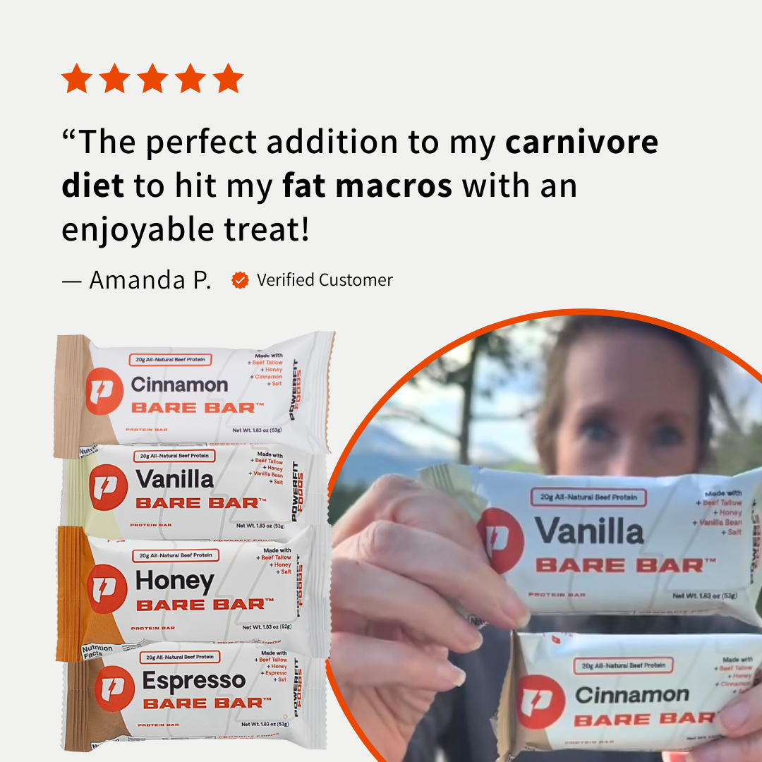 Bare Bar is the clean protein snack you’ve been searching for. Made for those who care about performance, recovery, and the quality of what goes into their bodies, it's everything a grass-fed protein bar should be: simple, powerful, and free from the junk.